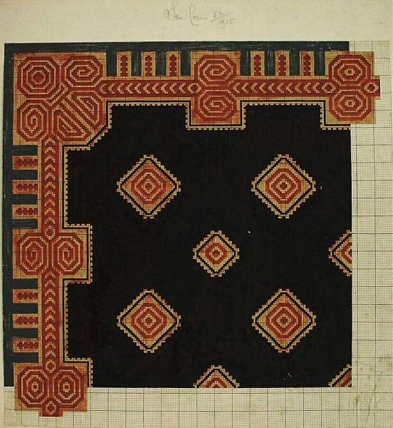 Ontwerp voor een gangkleed beneden, 14 juli 1915