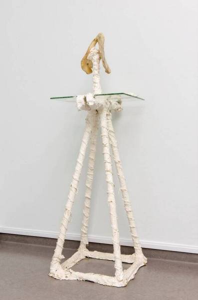inkt op bot en glas, metaal en gips
