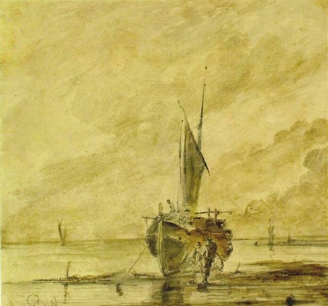 Bark bij ebbe op het strand, 1835-1860