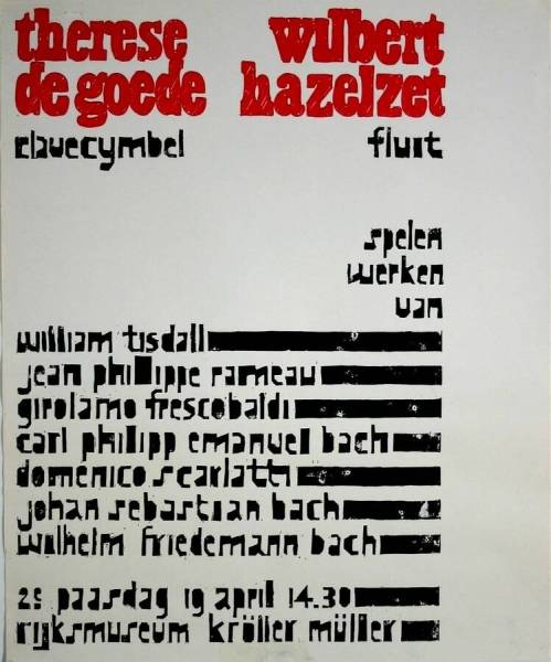 Affiche Rijksmuseum Kröller-Müller (concert door Therese de Goede [clavecimbel] en Wilbert Hazelzet [fluit]), ongedateerd