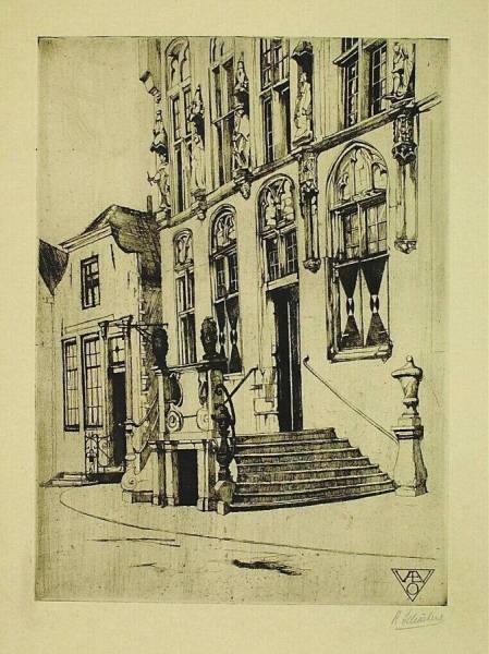 Gotisch gebouw in Hollandse plaats, ongedateerd