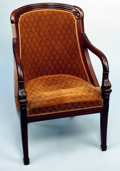 beuken- en mahoniehout (gepolitoerd), met wollen, velours bekleding