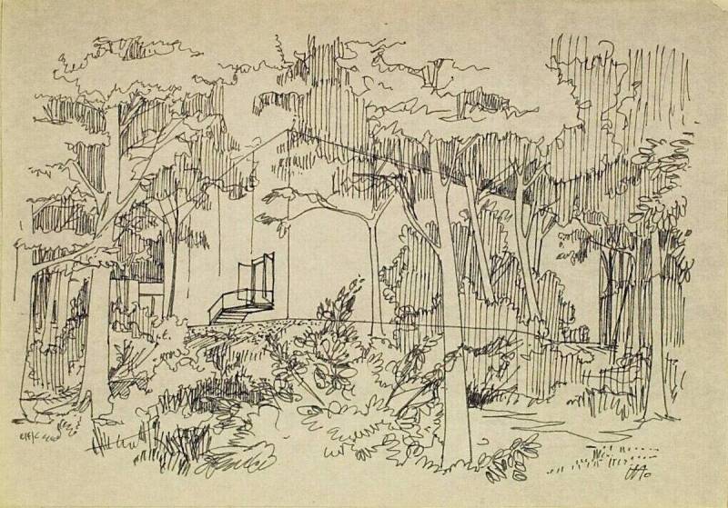 Uitbreiding Kröller-Müller Museum: situatieschets grote beeldenzaal (met begroeiing), circa 1975-1980