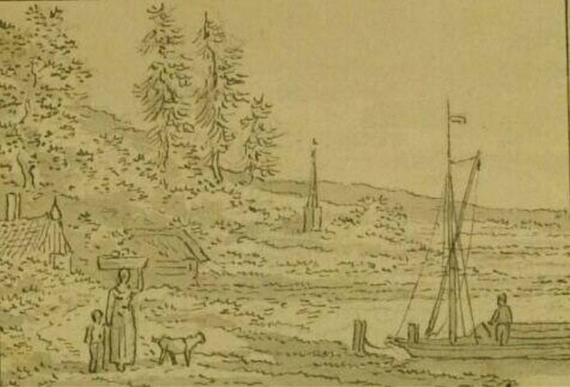 Riviergezicht met figuren en een scheepje, eind 18de - begin 19de eeuw