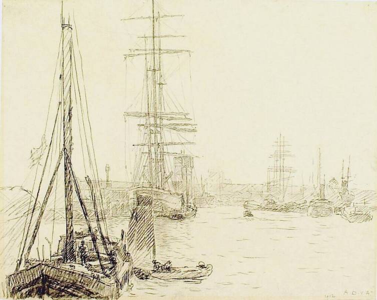 Zeil en stoomboten in de haven van Rotterdam, 1912