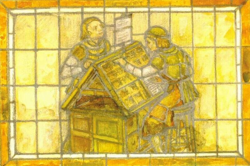 Ontwerpen voor gebrandschilderde raampjes: typografische ambachten en wetenschappen (de zetter), 1922