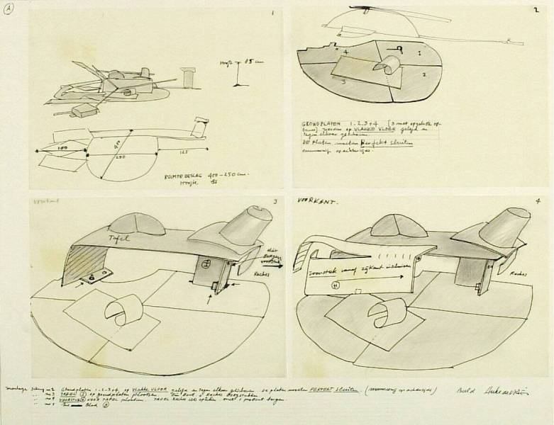 inkt (viltstift) en potlood op papier (transparant papier op karton)