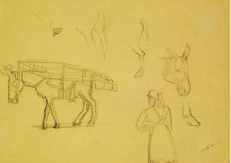 Een lastezel en een op de rug gezien figuur, 1914