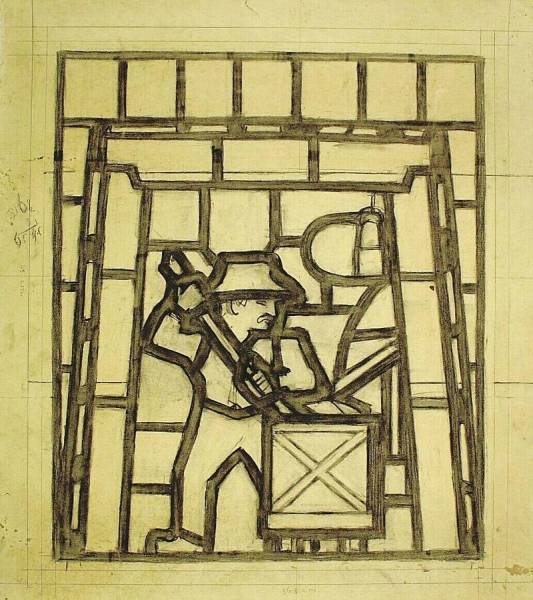 Ontwerpen voor panelen van het glas-in-lood-raam 'De mijnbouw', 1914