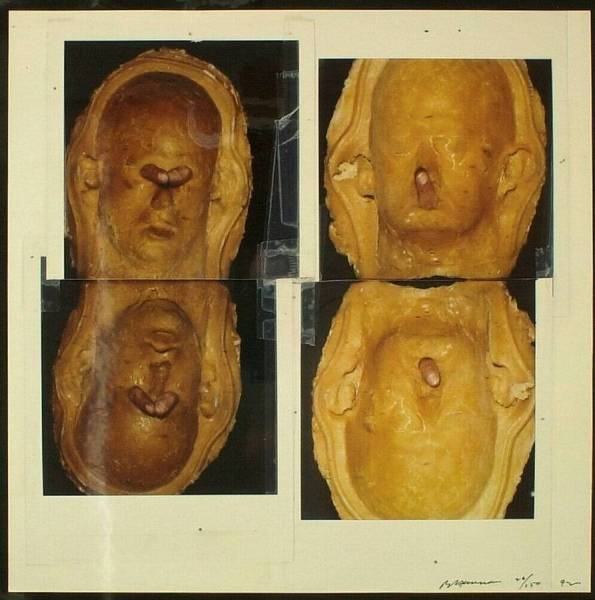 kleurenfoto: silver dyed bleach op Cibachome papier. 1 foto van 4 foto's, in zijn geheel geplakt op een secundaire drager van karton