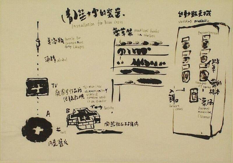 Tekening voor 'Internal and External Universe: Water Wood Metal Fire Earth' en voor 'Blue Cross', 1994