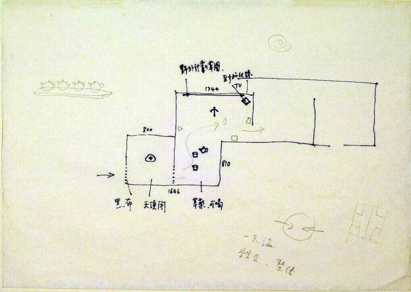 Tekening voor 'Internal and External Universe: Water Wood Metal Fire Earth' (plattegrond museumzalen), 1994