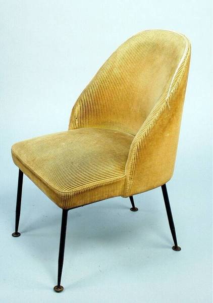 metaal en beukenhout, bekleed met lichtgeel ribfluweel