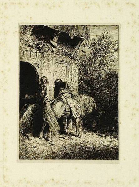 Ruiter voor herberg met jonge vrouw, 19de eeuw
