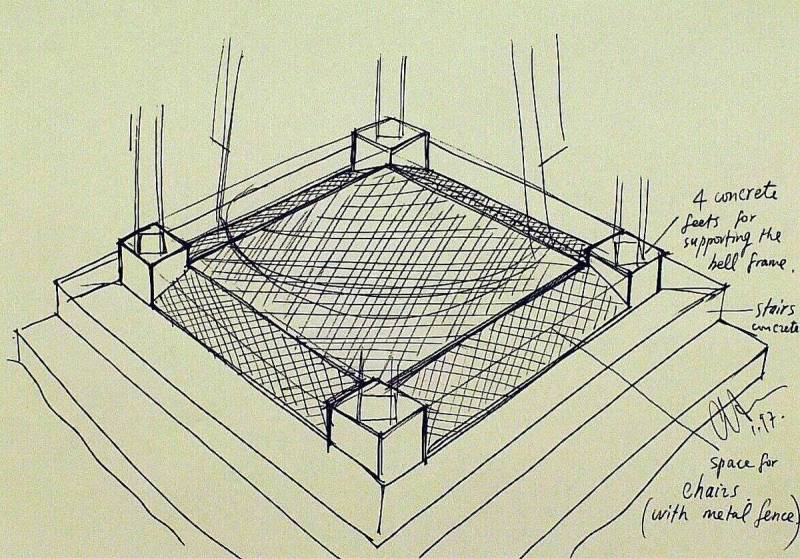 Schets voor herplaatsing 'Resonance' in beeldentuin, januari 1997