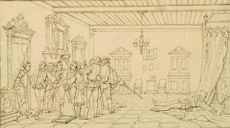 Drawing after the Painting 'L'Assassinat de Duc de Guise au chateau de Blois'