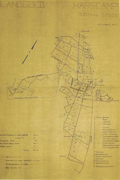 Landgoed 'Harscamp', met vermelding van de bestemmingen van gronden en huizen, November 1937