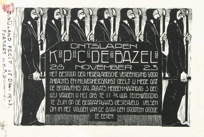 Rouwkaart van K.P.C. de Bazel (overleden 23 november 1923), 15 December 1923