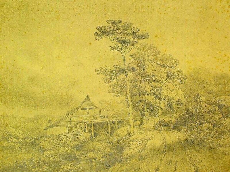 Watermolen in een heuvelig landschap, 1847