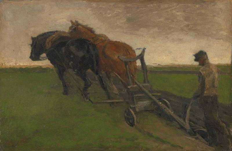 Van Gogh was keenly interested in peasant life, but he did not often paint ploughmen. Given the subject and composition, this painting seems to correspond to a drawing of a ploughman that he made in mid-October 1883, when he was staying in Drenthe. But not long after the painting was added to the collection in 1949, well-founded suspicions arose regarding its authenticity.
