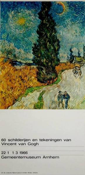 Affiche Gemeentemuseum Arnhem (tentoonstelling '60 schilderijen en tekeningen van Vincent van Gogh'), 1966