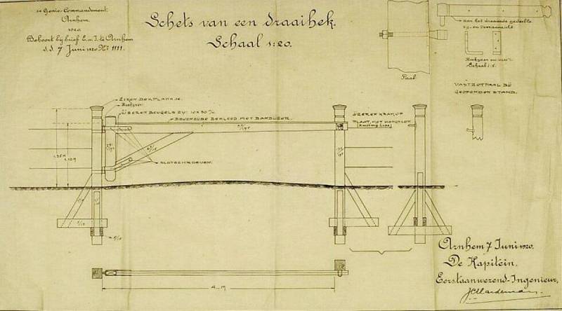 Schets van een draaihek (aanzicht, opzicht en details), 7 June 1920