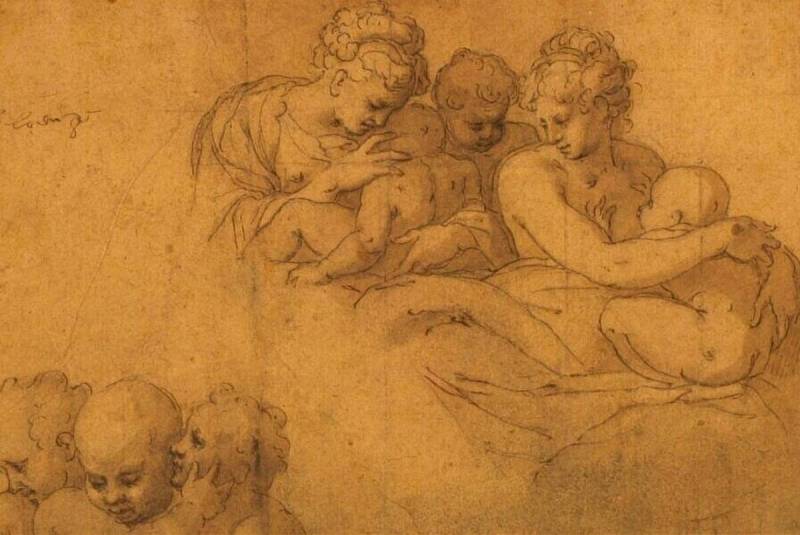 Two Women with Children, Three Putti