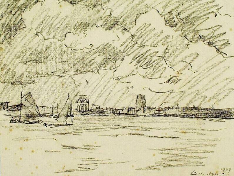 Gezicht op Rotterdam vanaf de rivier, 1919