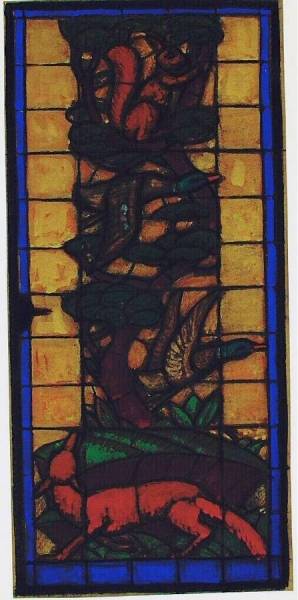 Gestileerde dieren en plantmotieven, onder een vos, 1920