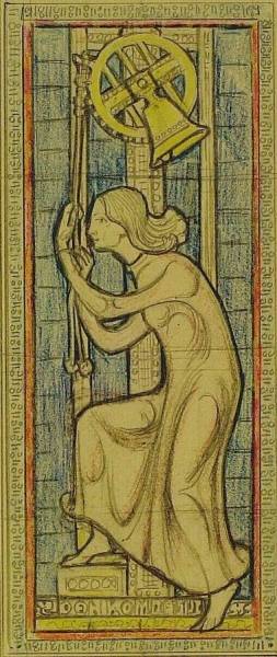Klokkenluidende vrouwenfiguur, ontwerp voor een raam, c. 1905