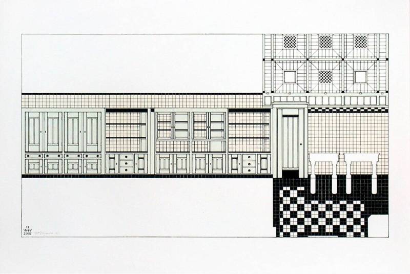 Reconstructie van het kleurenschema van Bart van der Leck voor de keuken van het jachthuis Sint Hubertus, 2002