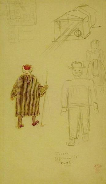 Study 'Mines at Zaccar, North Africa', Three Figures, Construction in Background