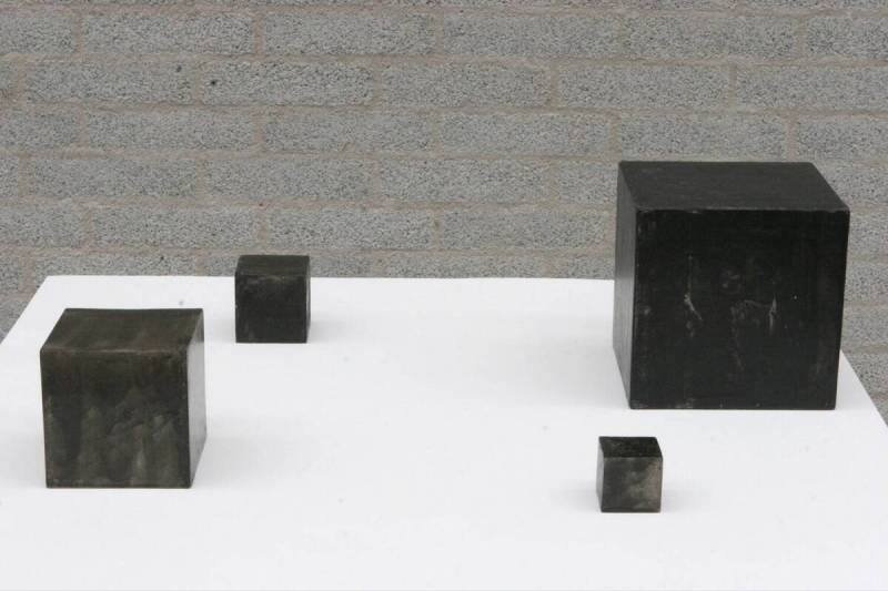 Circa 100 × 100 × 100 cm kubus 1: 5 x 5 x 5 cm kubus 2: 7,6 x 7,6 x 7,6 cm kubus 3: 12,5 x 12,5 x 12,5 cm kubus 4: 20 x 20 x 20 cm