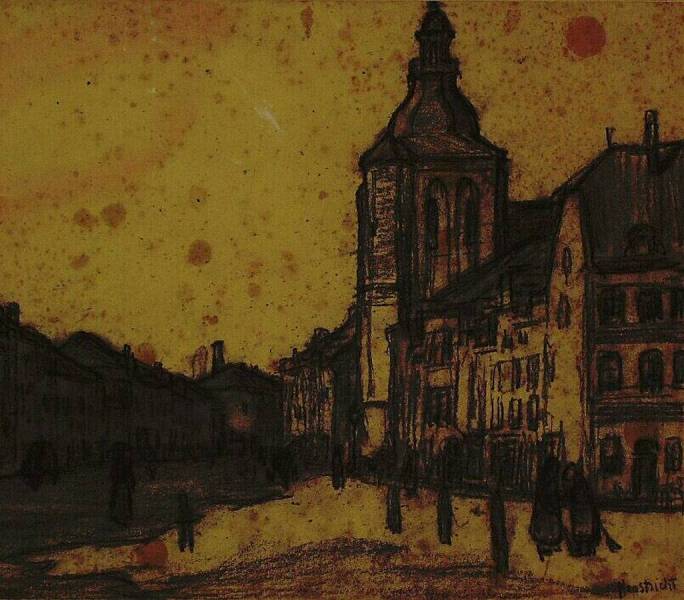 Stadsgezicht met kerk (Maastricht), late 19th - early 20th century