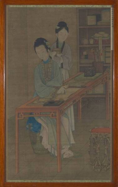 Het overdenken van een gedicht in het privévertrek van een dame, Qing dynasty (1644-1911)