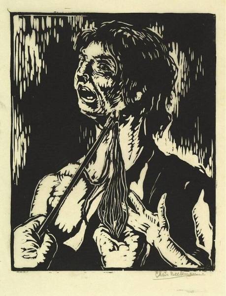 ink on paper (linoleum-block printing)