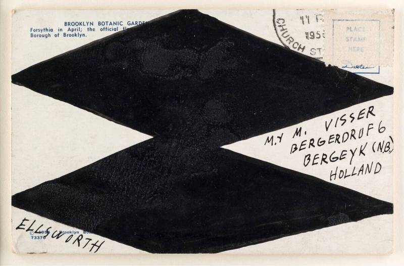 Briefkaart met tekening aan Martin en Mia Visser, 1956