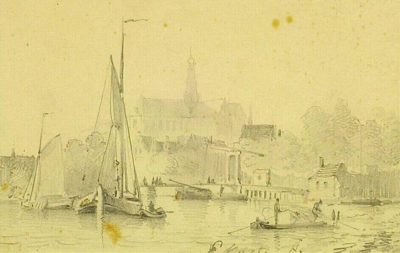 Gezicht op Haarlem van het Spaarne af gezien, c. 1864