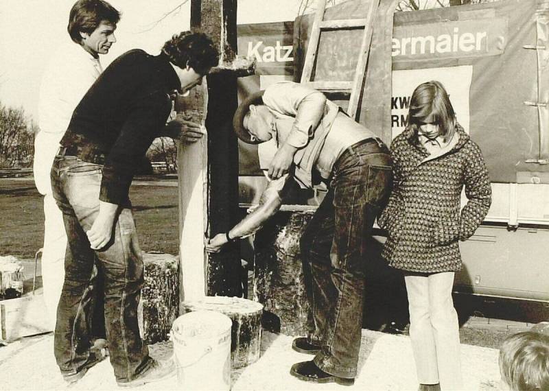 Joseph Beuys bij het gedenkteken van trofeeën in Kleef, 1976