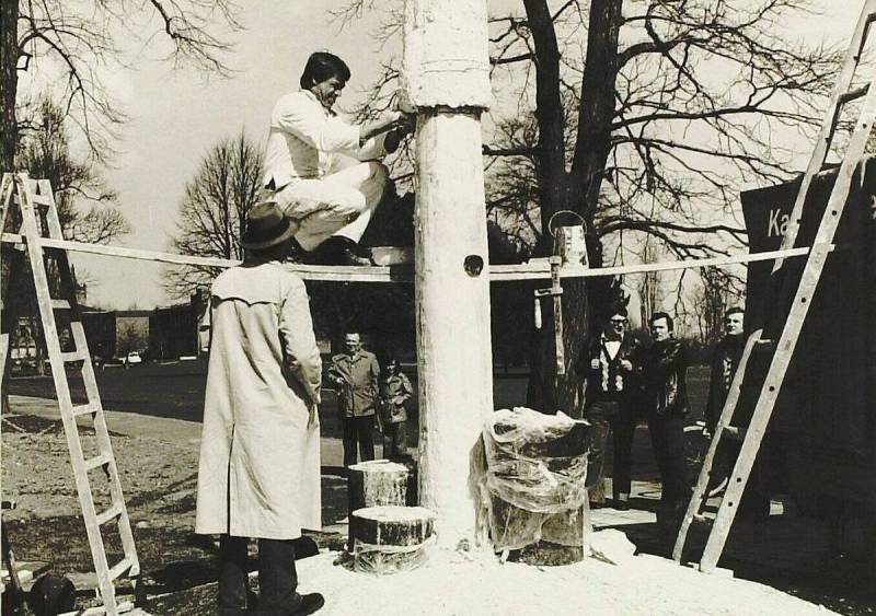 Joseph Beuys bij het gedenkteken van trofeeën in Kleef, 1976
