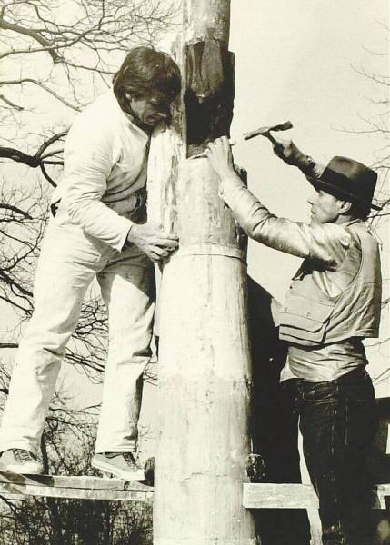 Joseph Beuys bij het gedenkteken van trofeeën in Kleef, 1976