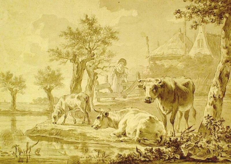 Een landschap met vee in een weide aan het water, late 18th - first half 19th century