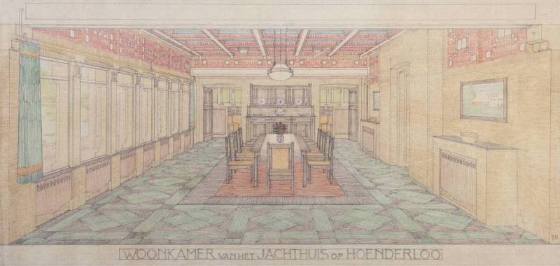 Ontwerp voor het het jachthuis St. Hubertus, woonkamer, 1916-1919