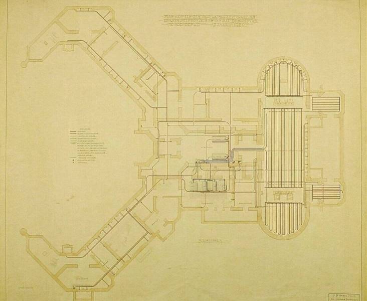 Plan voor een centrale warmwaterverwarming en warmwatervoorziening: sousterrain, 22 January 1918