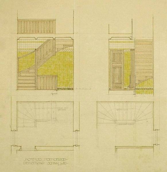 Diensttrap jachthuis St. Hubertus, plattegronden en aanzichten, 1916-1919