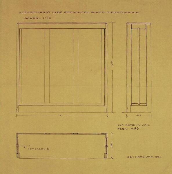 Kleerenkast in de personeelkamer van het Dienstgebouw (bij St. Hubertus), January 1920