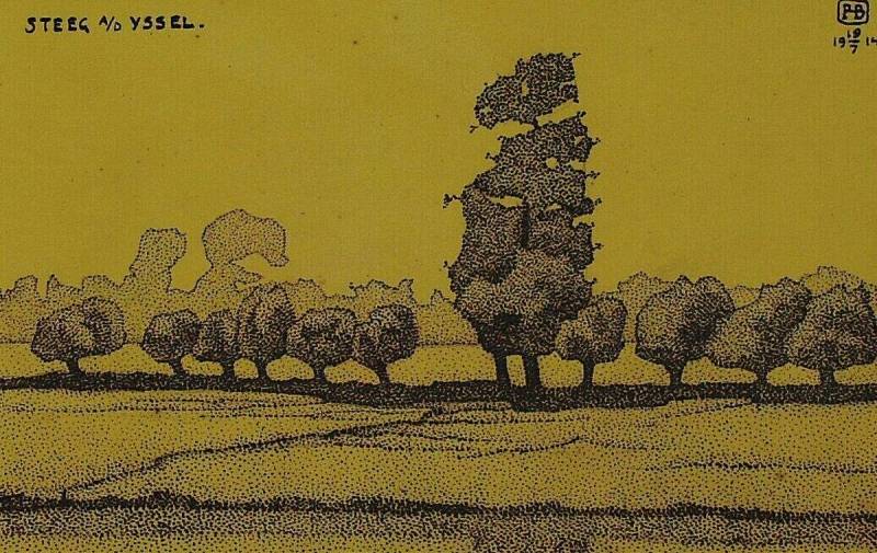 Steeg aan de IJssel (landschap met wilgen en een hoge boom), 19 July 1914