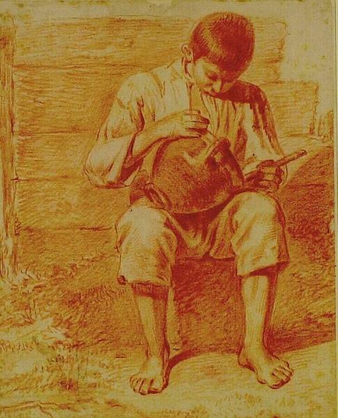 Zittend jongetje een pot uitlepelend, late 18th - early 19th century