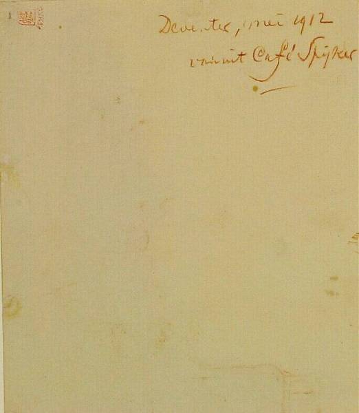 Verso van 'Gezicht op toren en kade van Deventer', May 1912