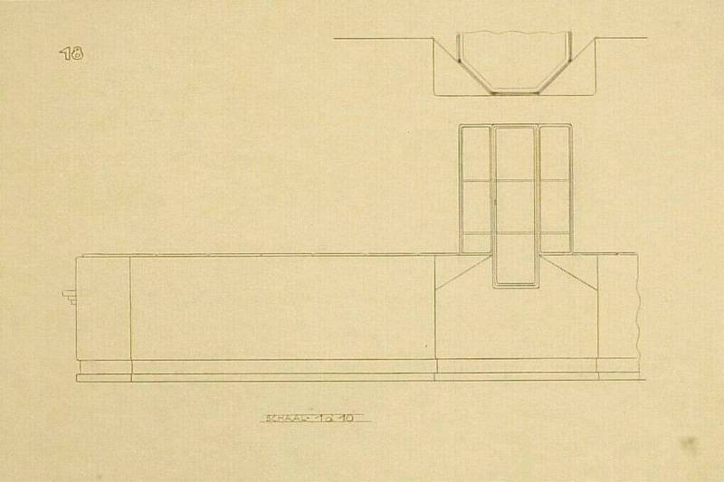 Achteraanzicht van sofa en vitrine voor kleinsculptuur, date unknown